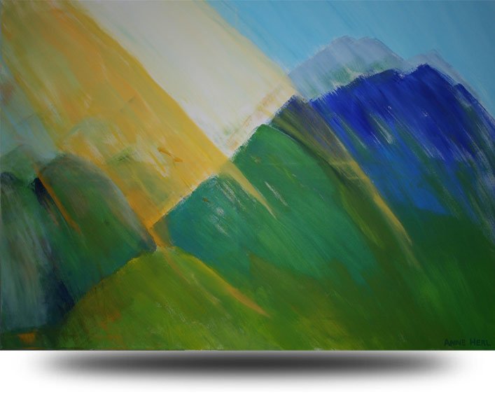 Wilder Kaiser, 60x100cm, Acryl auf Leinwand, verkauft Oxidation, 3 x 30x30cm, Acryl auf Leinwand, verkauft Flügelwesen, 3 x 30x30cm, Acryl auf Leinwand, verkauft Birken, 3 x 40x50cm, Acryl auf Leinwand, verkauft Ende der Eiszeit, 2x100x80cm, Acryl auf Leinwand Polarlicht, 50x60cm, Acryl auf Leinwand, verkauft Wolkenreise, 50x40cm, Acryl auf Leinwand, verkauft 2 x rot, 2x80x80cm, Acryl auf Leinwand